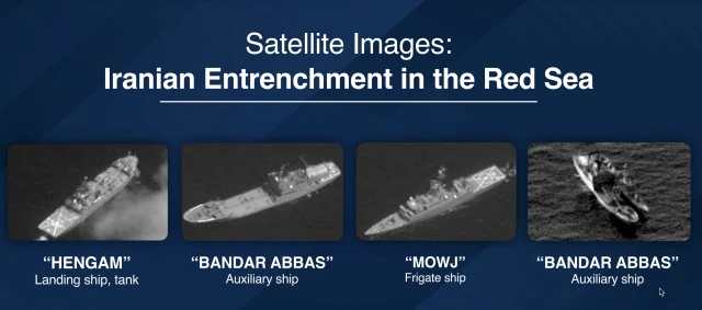 Speaking at the 26th Annual Economist Government Roundtable in Athens, Benny Gantz showed his Greek and Cypriot counterparts satellite images of Iranian entrenchment in the Red Sea waters – four military ships.
