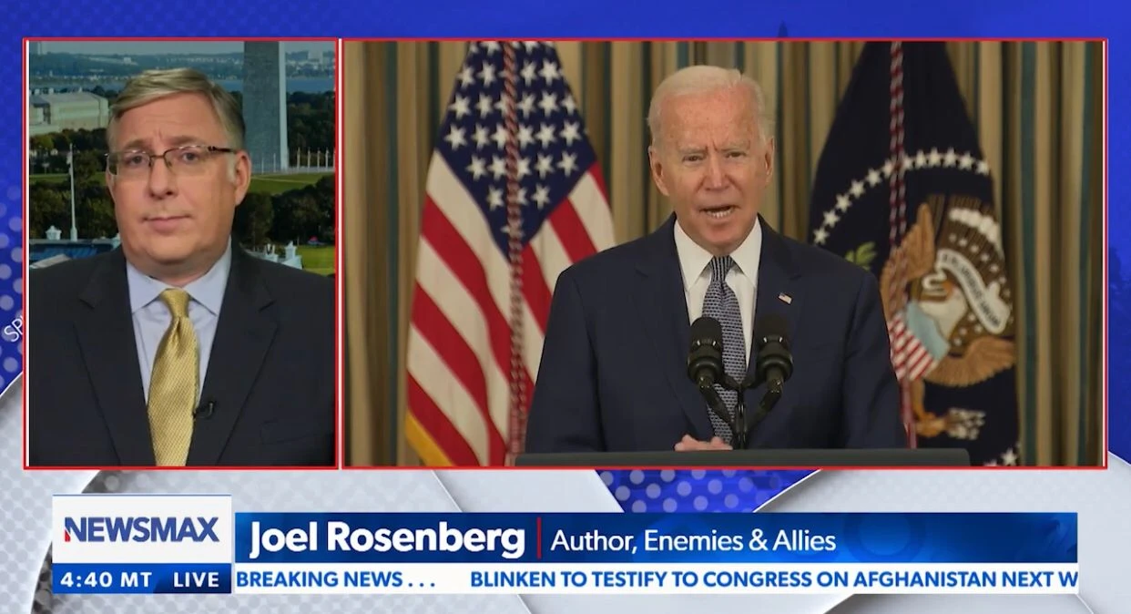 “President Biden's surrender to the Taliban is… the greatest TV propaganda ad for radical Islam that there ever was after 9/11,” said Joel C. Rosenberg on Newsmax TV on Tuesday night. “And Iran is close to getting 'The Bomb.'”