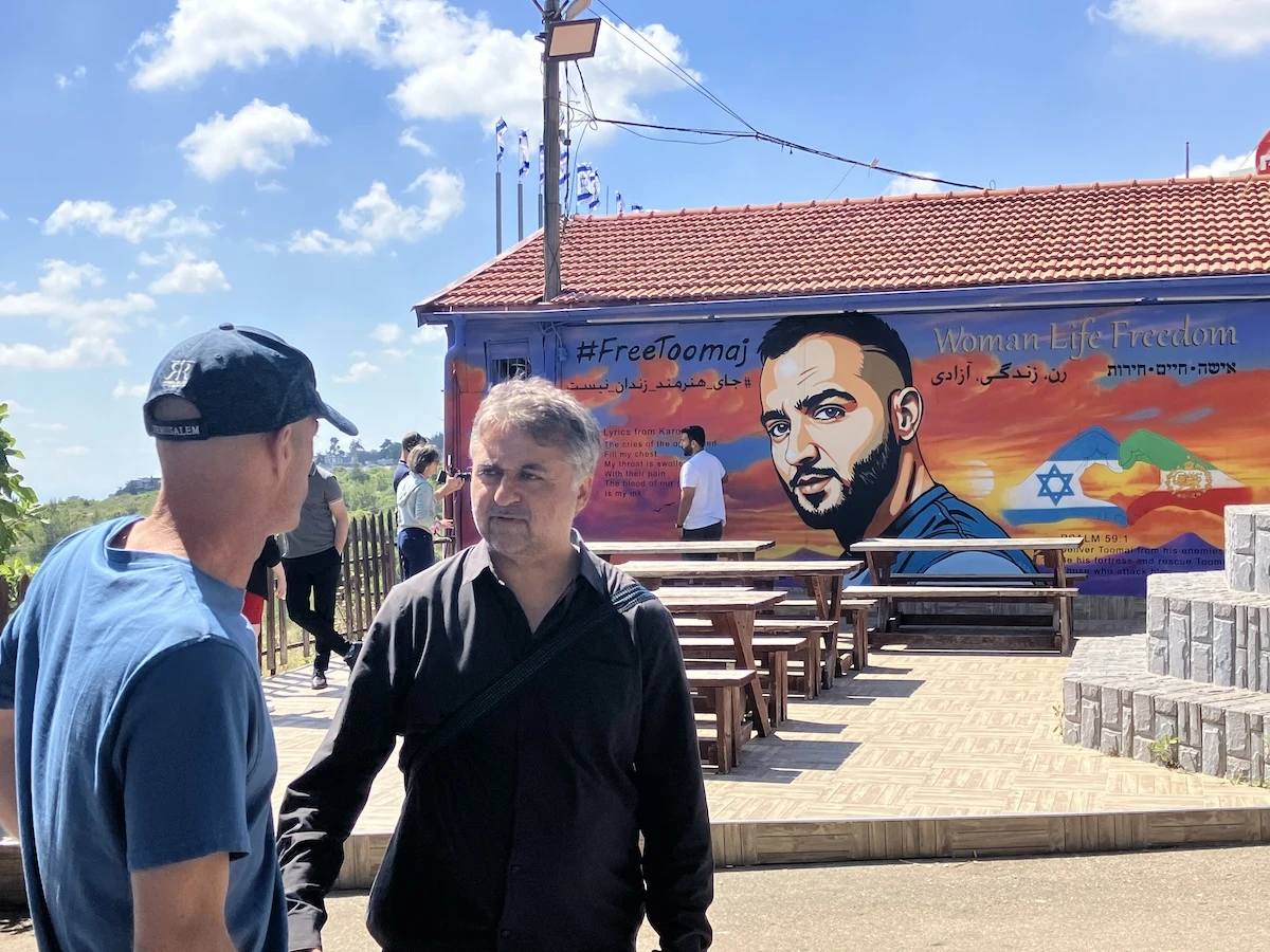 The Neve Ilan mural, painted by two Israeli artists and commissioned by Iranian-born Hooman Khalili, also included some words adapted from Psalm 59:1, "Deliver Toomaj from his enemies, O my God; be his fortress and rescue Toomaj from those who attack him."