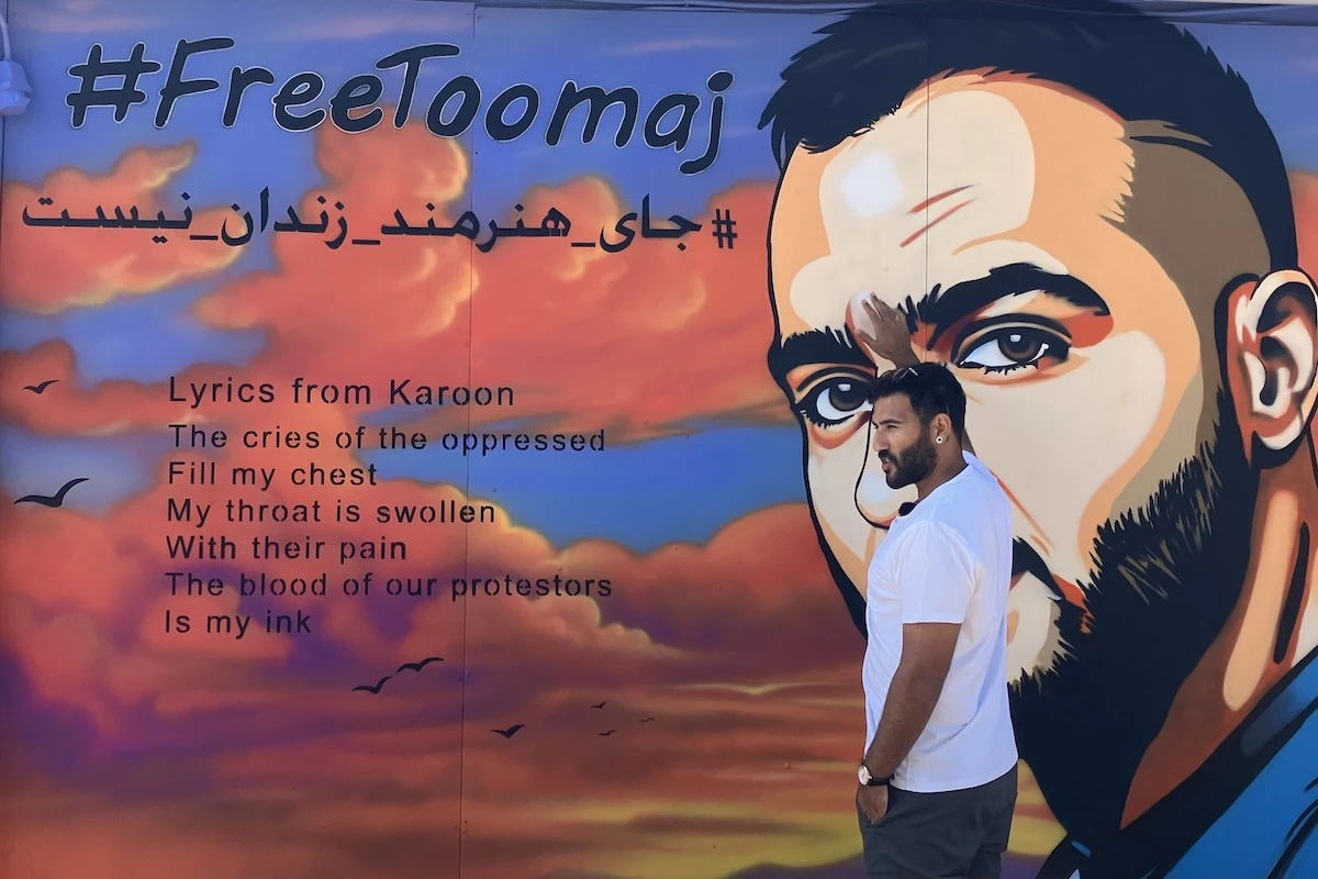 During the unveiling of the mural on May 15, Khalili asked, "Why is no one camping at the universities for Toomaj? Thank you, Israel... this innocent man has been tortured in prison for two years, and is about to be executed. Thank you Israel for caring about the people of Iran, thank you Israel for helping us fight our common enemy, the Islamic regime."