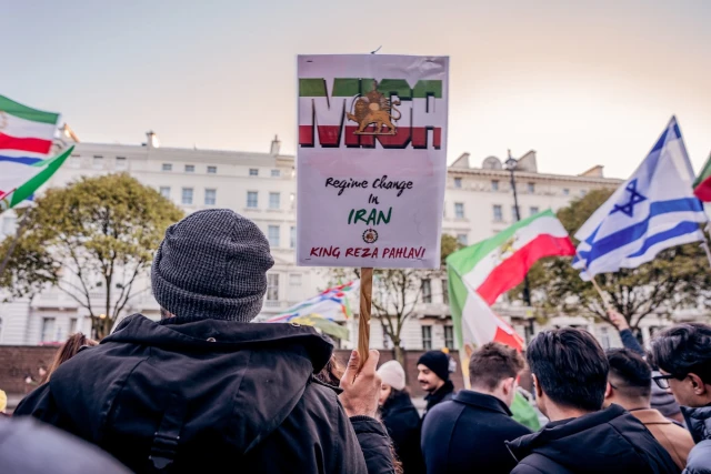 Supporters of the deposed Shah of Iran Mohammad Reza Pahlavi, and his U.S.-based son, Reza Pahlavi, gathered in a separate rally in London.