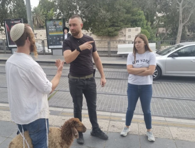 Hozrim Lahar does not only attempt sacrifices during the important holidays. Over the summer, the group posted several announcements to their Facebook account showing people who had been stopped on the way to the Temple Mount with sheep.