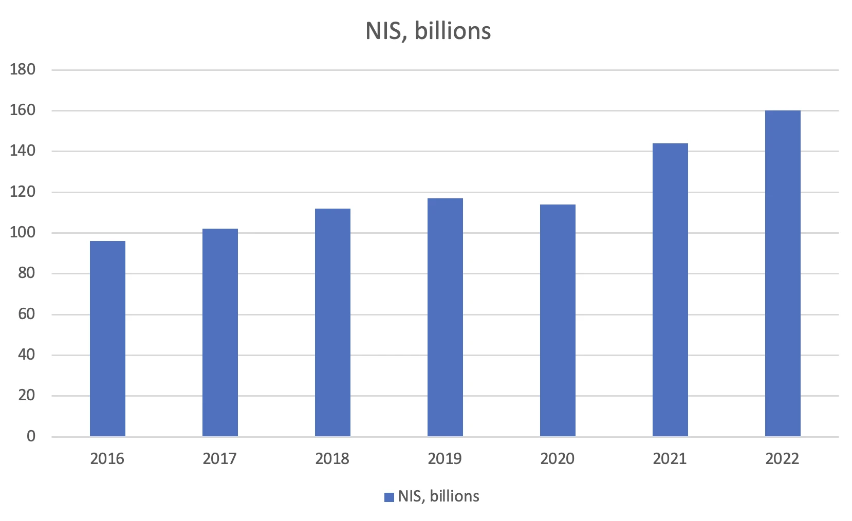 In terms of goods exports, the first six months of 2022 saw an 18% increase. Among the most notable gainers in the export of goods were chemicals and chemical industrial products (55%), electrical & mechanical equipment (18%), and diamonds (41%). However, as interest rates continued to rise throughout the world and in Israel during the second half of the year, the Ministry of Economy predicted a 15% decrease in goods exports.