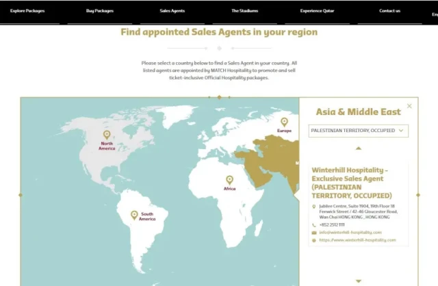 After soccer fans noticed that the list of agents did not include Israel, the “occupied Palestinian territories” sales agent was removed. However, at the time of publication, Israel was still not available on the list of sales agents on the website, whereas “Palestine” was.