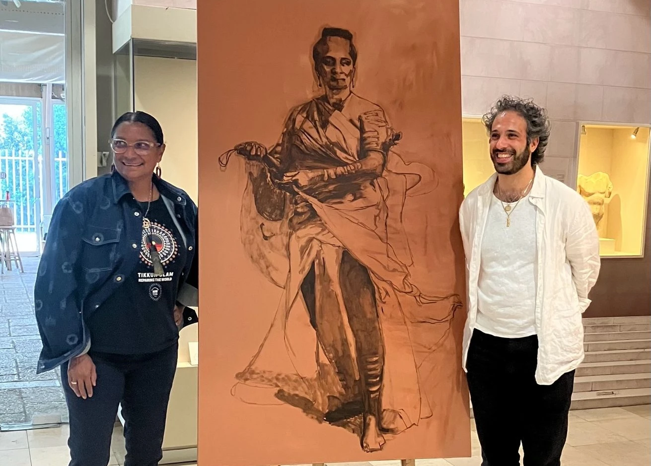 Then, of course, there’s the picture that’s still in progress of Nova Peris, the Aboriginal athlete and former politician – a whole project in itself. In order to create the painting, they trekked together up the Masada fortress, where the Jewish rebels refused to surrender to the Romans. In her elaborate traditional outfit, each item replete with symbolism, Peris stands proudly on the rock, demonstrating her solidarity with Israel. The striking image tells the story of two indigenous people groups at once: both with ancient historical roots to their lands, both having undergone terrible hardship, but both still standing in resilience.