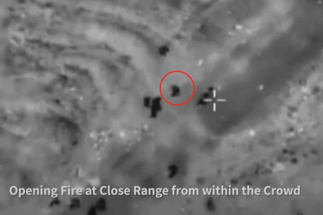 The IDF released aerial footage that appeared to show terrorists in Gaza firing at the crowds in Gaza City before the arrival of the humanitarian aid.