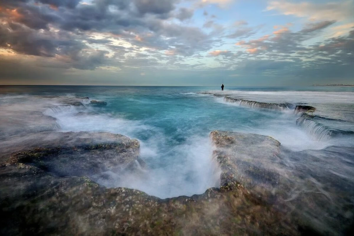 “I went out one winter Friday afternoon to photograph at Palmahim beach, with two of my children,” he said. “We stepped onto a rocky platform slightly higher than sea level, where seawater poured in with the waves, and approached the spot where the rock shelf drops off into the sea. The sea was a little rough, so I left my kids a few meters behind me and stood at the edge to photograph the shelf and the waterfalls created by the receding waves. A six-second exposure beautifully blurred the water and emphasized the small falls tumbling back into the sea. I felt I was just warming up, and that soon the light of sunset would reach its peak, but then a huge wave swept over me and the kids."