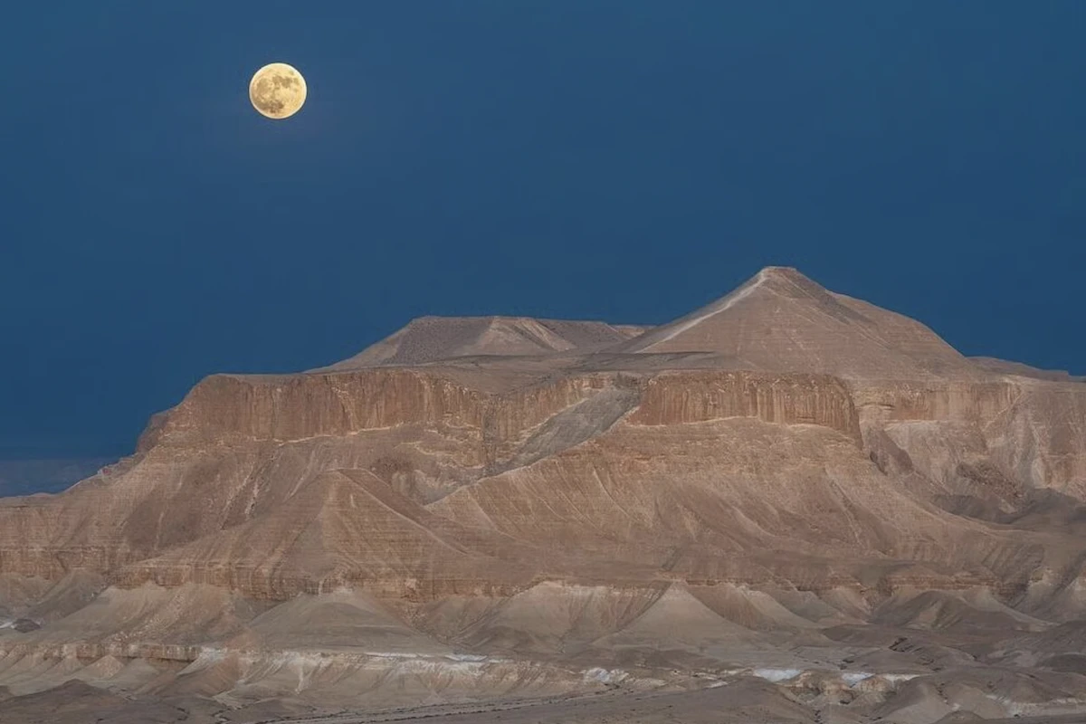 “Taking this photo required meticulous planning,” he explained. “Timing-wise, it had to be on the evening when the full moon rose just before sunset, so that the setting sun on the opposite horizon would bathe the mountains in a delicate reddish hue. Location-wise, I wanted the moon to rise just to the left of Hod Akev’s peak to balance the image. I scouted the area near Sde Boker ahead of time to find the exact spot I would need to reach at the critical moment to capture the moon exactly where I wanted it in the frame.”