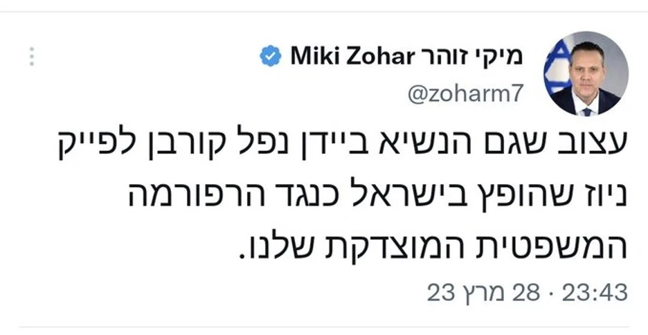 Zohar later deleted the post, although he posted a similar one, not directed towards Biden.