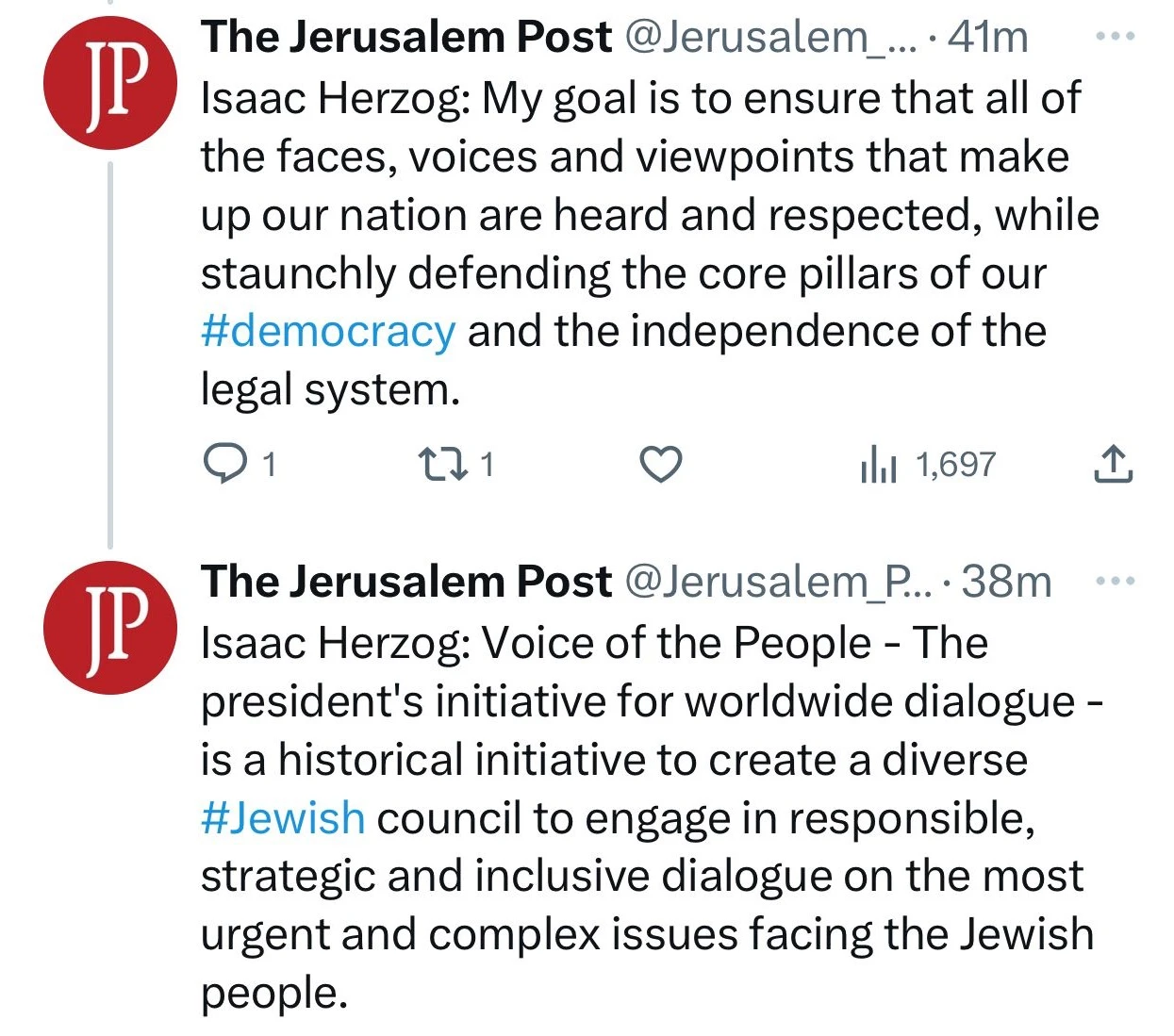 Addressing a standing-room-only crowd at a conference organized by the Jerusalem Post and the Museum of Tolerance, Herzog called Israel a “vibrant democracy” and vowed to protect that democracy.