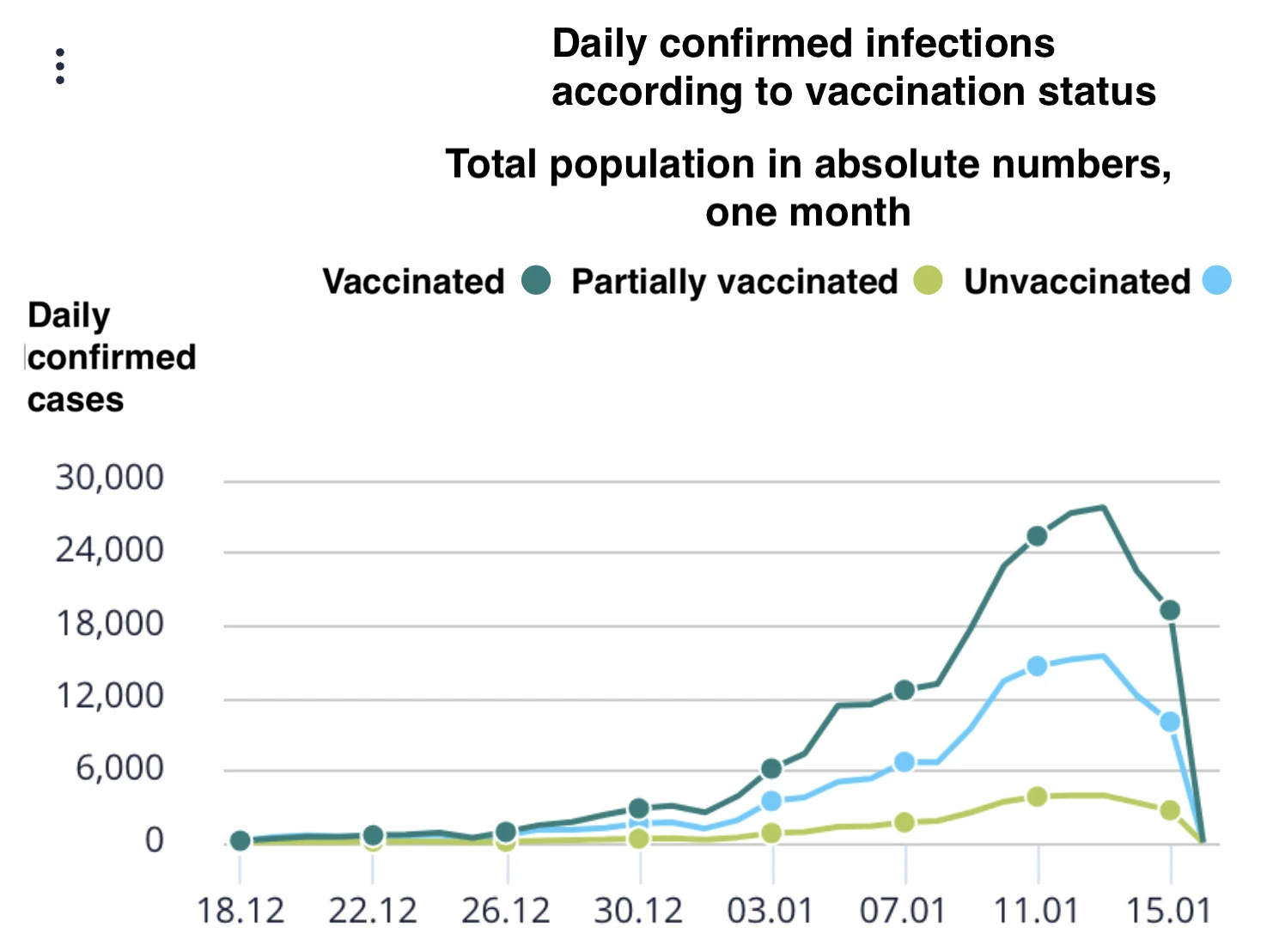 On Jan. 15 some 19,200 people who tested positive for COVID were considered fully vaccinated while 10,000 were unvaccinated and 2,700 were only partially vaccinated, according to the official Health Ministry dashboard.