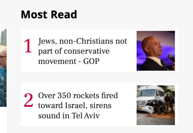Twelve days after the article was initially published on The Jerusalem Post and despite a mini-war between Israel and a Gaza-based terror group, the most read story on the news website was this: “Jews, non-Christians not part of conservative movement – GOP candidate consultant.”