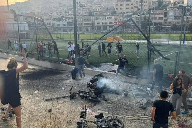 토요일 저녁 골란고원의 마즈달 샴스에 있는 축구장에 헤즈볼라가 발사한 로켓이 폭발해 10세에서 20세 사이의 어린이와 청소년 최소 11명이 사망하고 수십 명이 중상을 입었다.