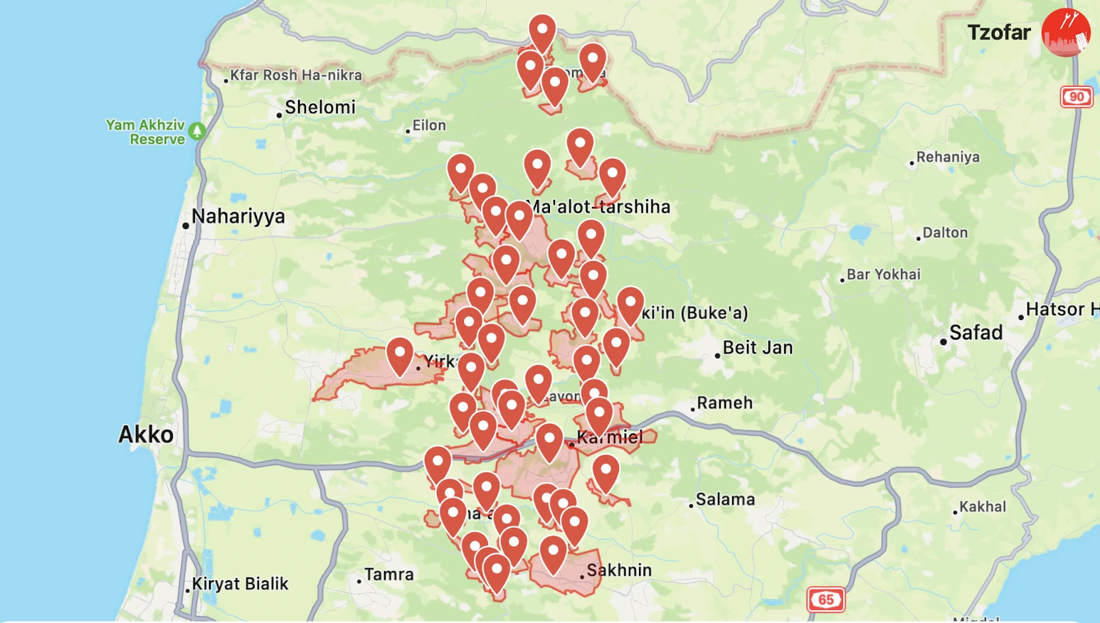 Initial reports of impacts in Carmiel, Ba'ana, and other locations in the Galilee after the heavy barrage launched from Lebanon a few minutes ago. Hezbollah-affiliated news site Al-Mayadeen confirmed the rockets were launched by the terror group. It said a warning had been issued to the targeted communities at 11:30 by Hezbollah.