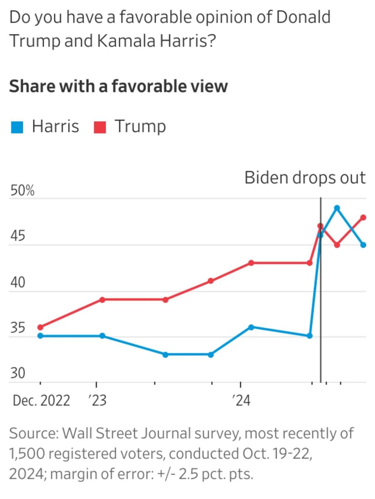 That's a major shift, said Kornacki, noting that a month ago, "Harris had a higher positive [rating] than negative."