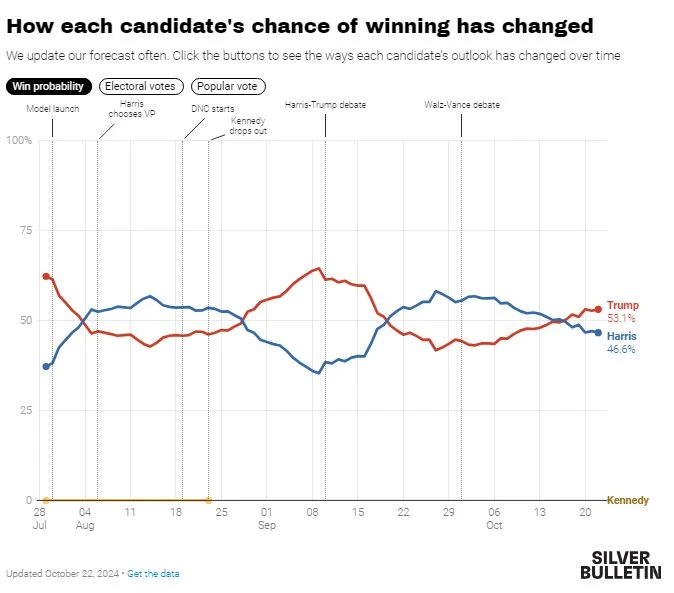 Momentum shifting to Trump – US presidential race too close to call, but experts say they detect dynamic change away from Harris, towards Trump