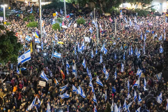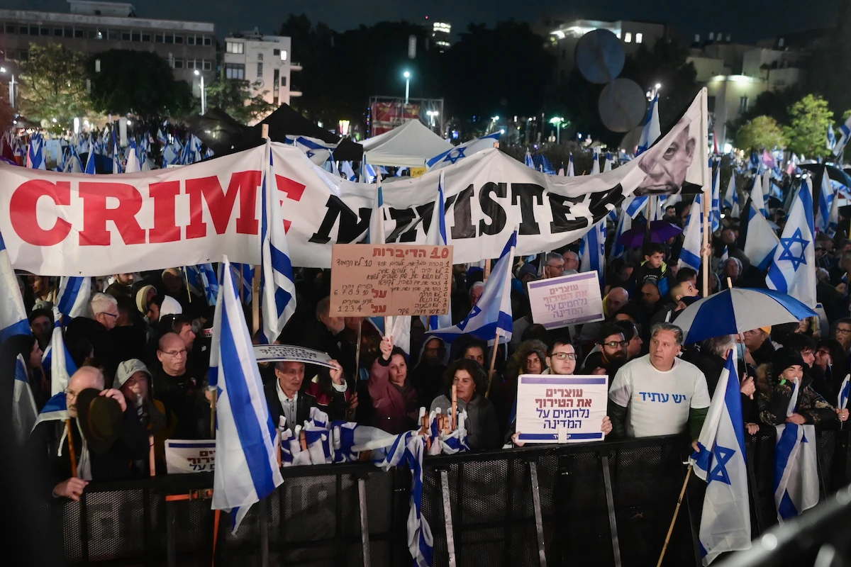 Tens of thousands of Israelis gathered at Tel Aviv's centrally-located Habima Square on Saturday evening for a mass protest against proposed reforms that would give Israel’s legislative branch, the Knesset, and the government of recently-elected Prime Minister Benjamin Netanyahu greater control over the judicial system.