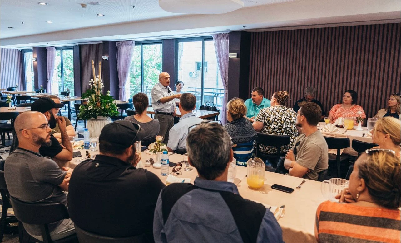 During their time here, led by Joshua Fund executive director, Carl Moeller, and Faith Wins executive director, Chad Connolly, they visited biblical sites across the Land, walked where Jesus and the apostles walked, took a boat ride across the Sea of Galilee, met Israeli and Palestinian pastors and ministry leaders, toured the Knesset, were briefed by various members of parliament, studying the scriptures, had times of worship and prayer, and lots of time of Q&A with my wife, my colleagues and me.