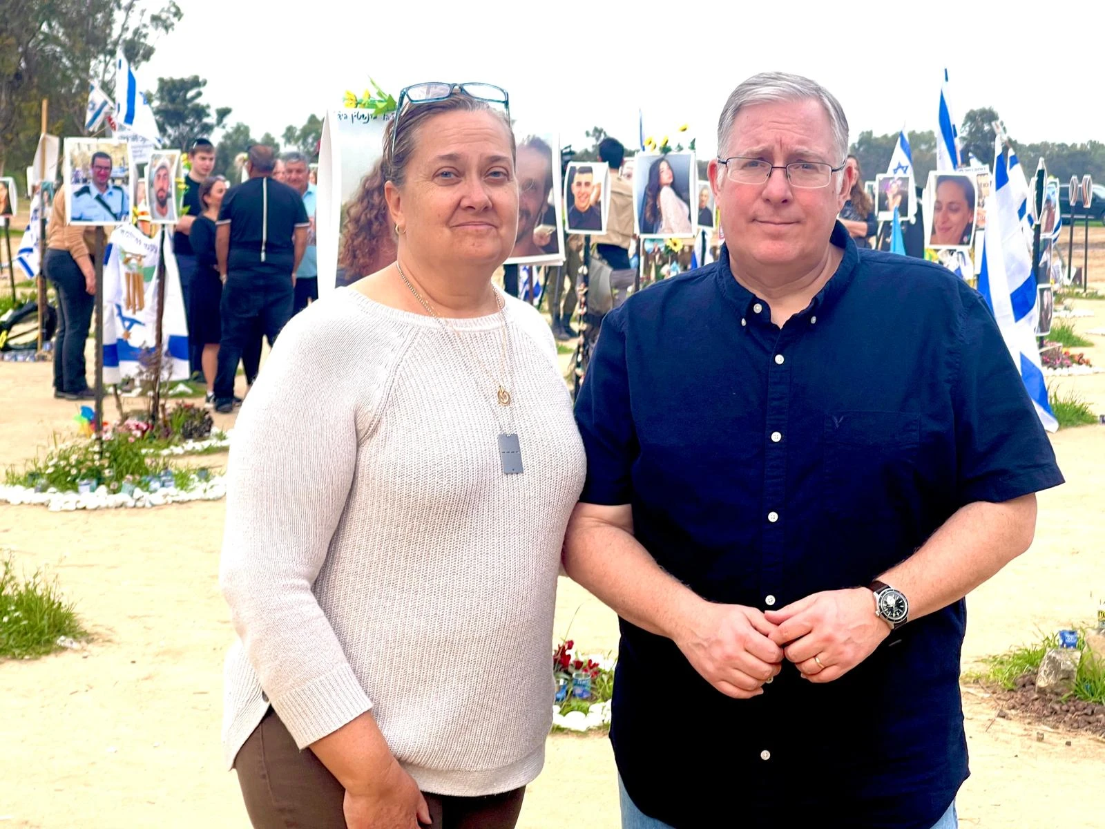 In addition to touring the devastation of Kibbutz Kfar Aza, and meeting with hundreds of IDF soldiers in the town of Ofakim, the Pompeos – accompanied by their host, Knesset Member Danny Danon, who previously served as Israel’s ambassador to the United Nations – came here to Re’im, where the Nova Music Festival was held last October, with more than 3,000 young Israelis attending.