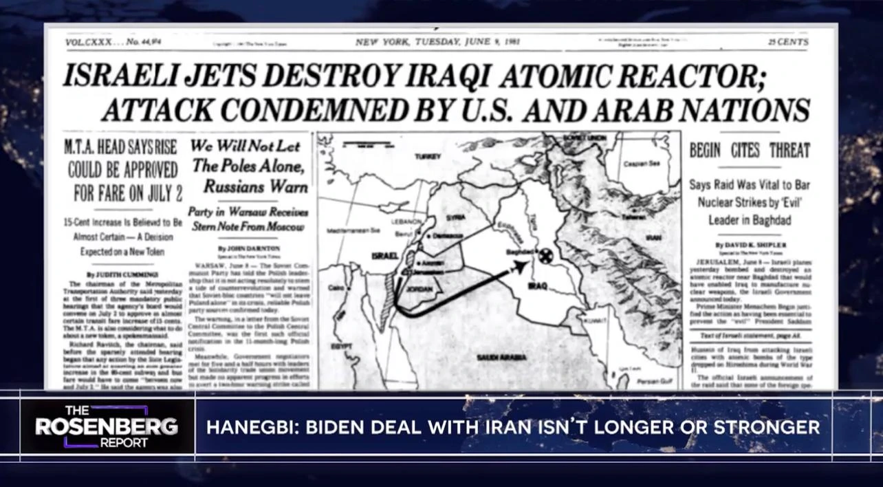 Hanegbi noted that Israel took bold and decisive military actions to destroy illegal nuclear facilities in enemy countries such as Syria and Iraq in 2007 and 1981 respectively.