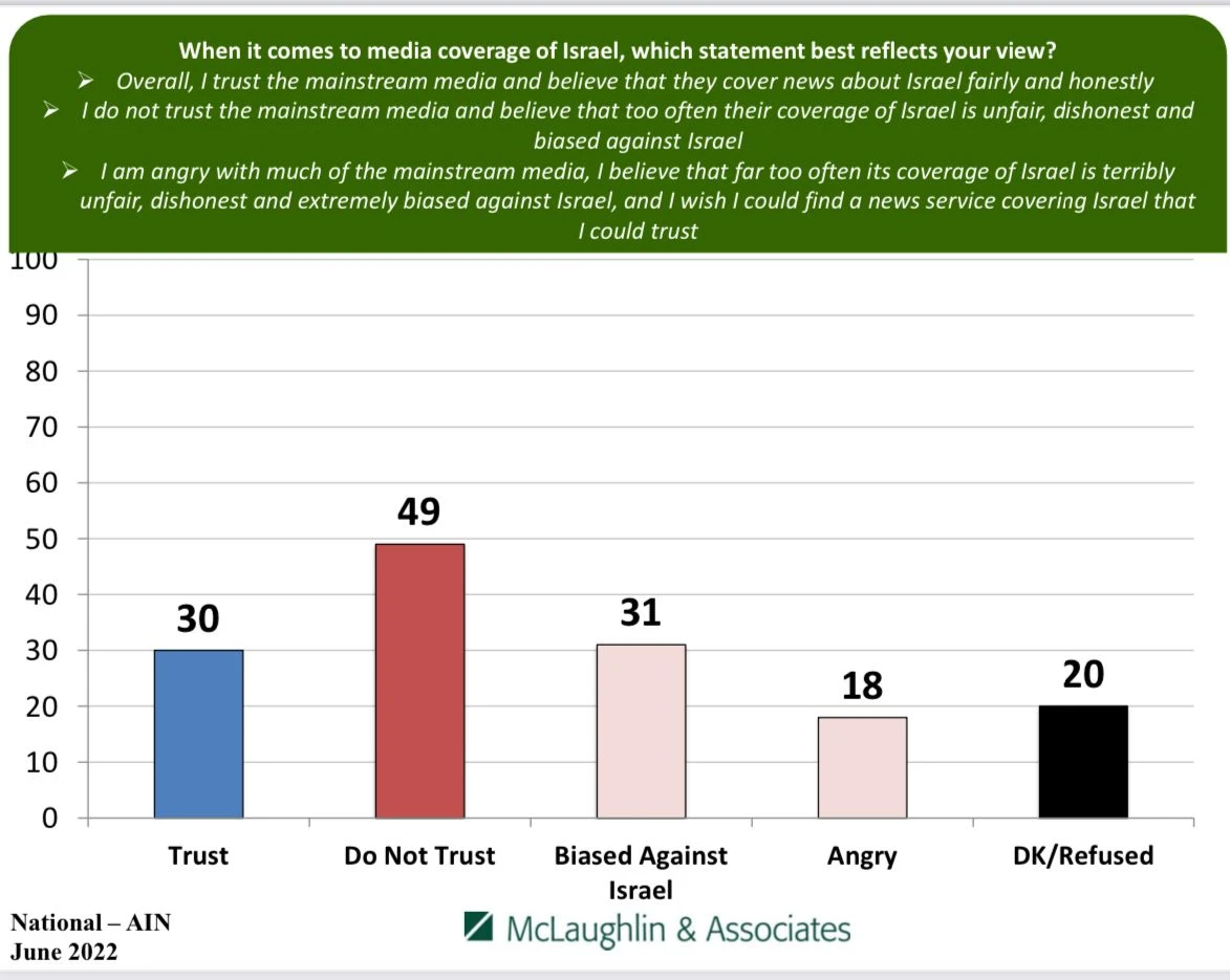 34.6% Do not trust because the media is dishonest and biased against Israel