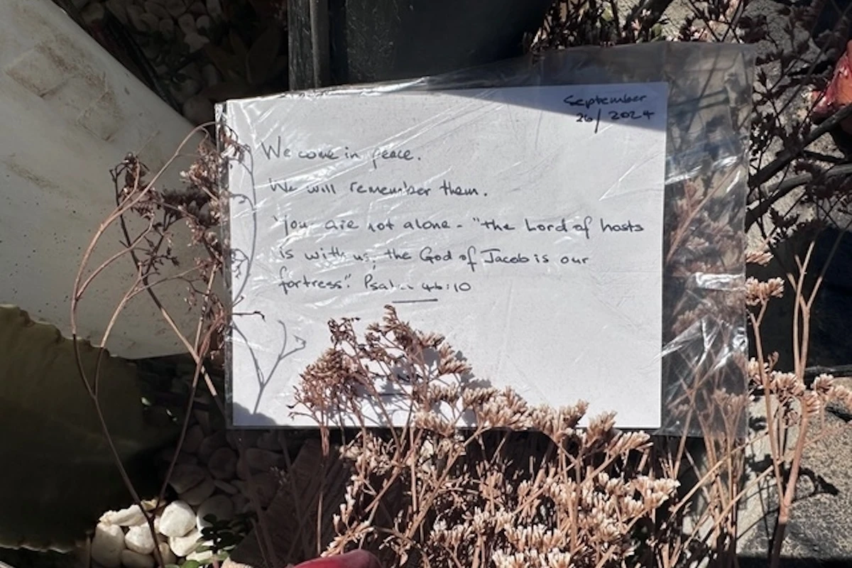 The bishop then traveled south to the communities most adversely affected by the Hamas atrocities. Dobbs left a handwritten note at the site of the Nova Music Festival, where 364, mostly young people, were murdered.