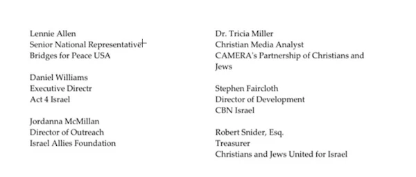DOZENS OF ADDITIONAL CHRISTIAN LEADERS SEND LETTERS SUPPORTING NEW ISRAELI GOVERNMENT