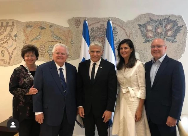 “I met today with Pastor John Hagee and Nikki Haley and thanked them for their unwavering support for the State of Israel,” Lapid wrote to his 272,000 followers. “The relationship between our countries is based on a deep bond and vital shared interests.”