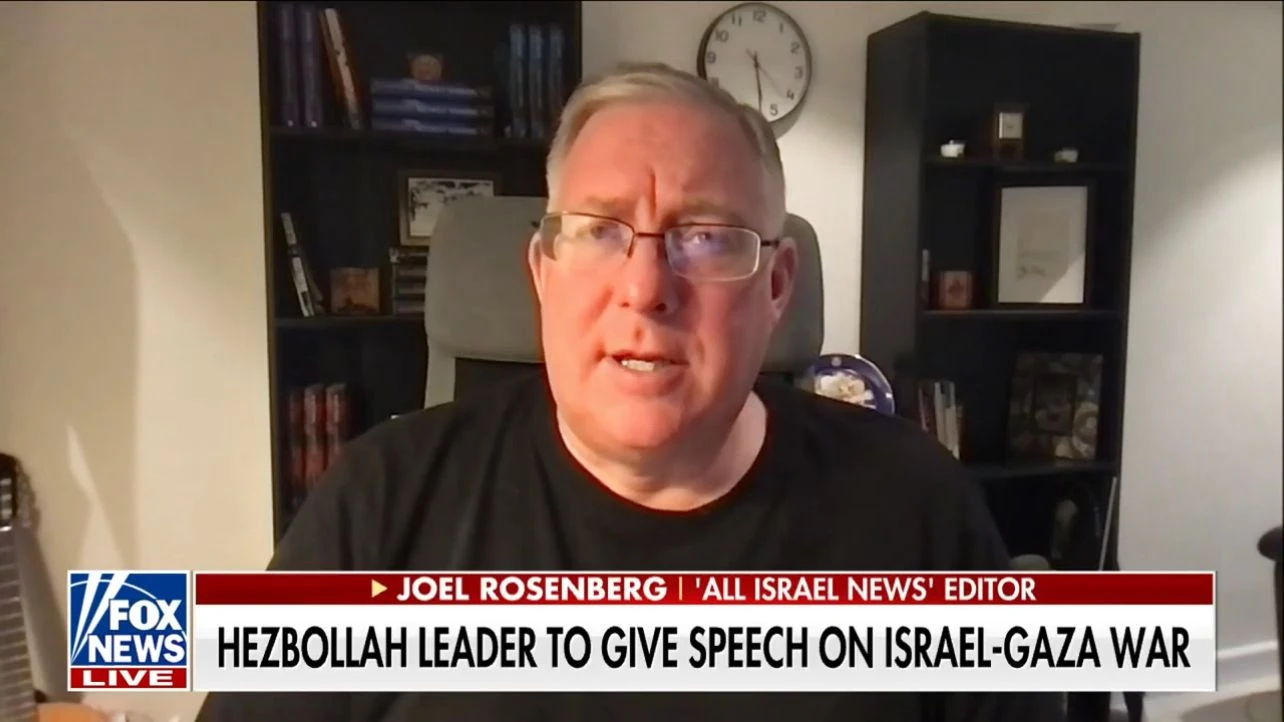 TRACE GALLAGHER: Let’s bring in New York Times best-selling author and editor of ALL ISRAEL NEWS, Joel Rosenberg. Joel, great to have you on the show again. I just want to get your take – I’ve got other stuff I want to talk to you about – but just this feeling. You’re over there. Hassan Nasrallah speaks in about 9 hours and 30 minutes. Is there a concern that he might want to up the ante here and start firing bigger and more rockets into northern Israel?