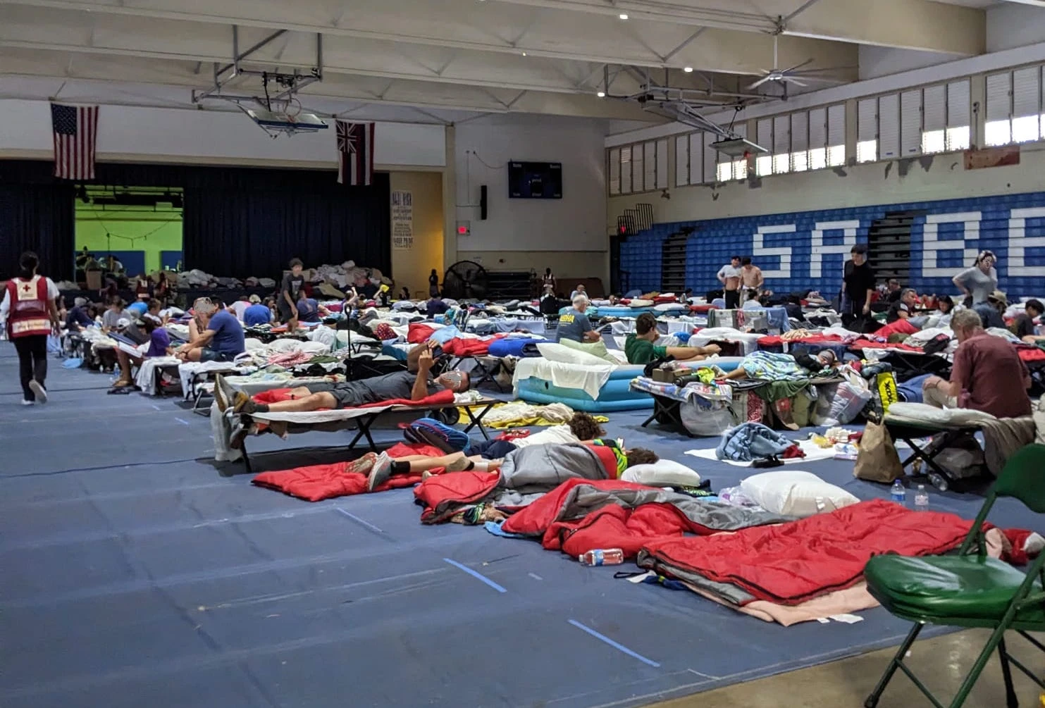 We are in Kahului where seemingly 6 of the island’s other major population centers are also evacuated and sheltering. It’s crazy over here. No hotels, AirBnBs, hostels; there are no rooms! We cannot sleep in the car again. The shelter has been turning people away because it is too full.