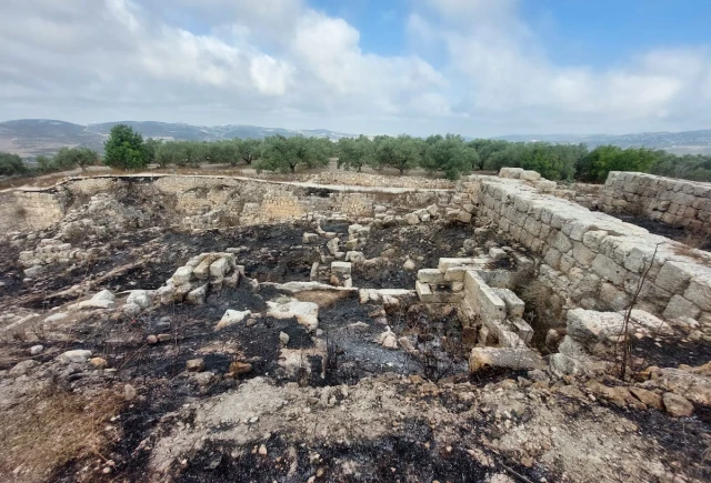 Archaeological artifacts in the biblical site of Sebastia in the West Bank were found damaged, burnt and painted on with Arabic writing