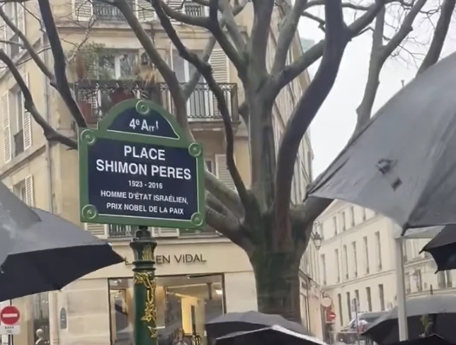 Under steady winter rain, the City of Paris this week inaugurated in the historic Marais District a square named after Shimon Peres, the former Israeli president and prime minister.