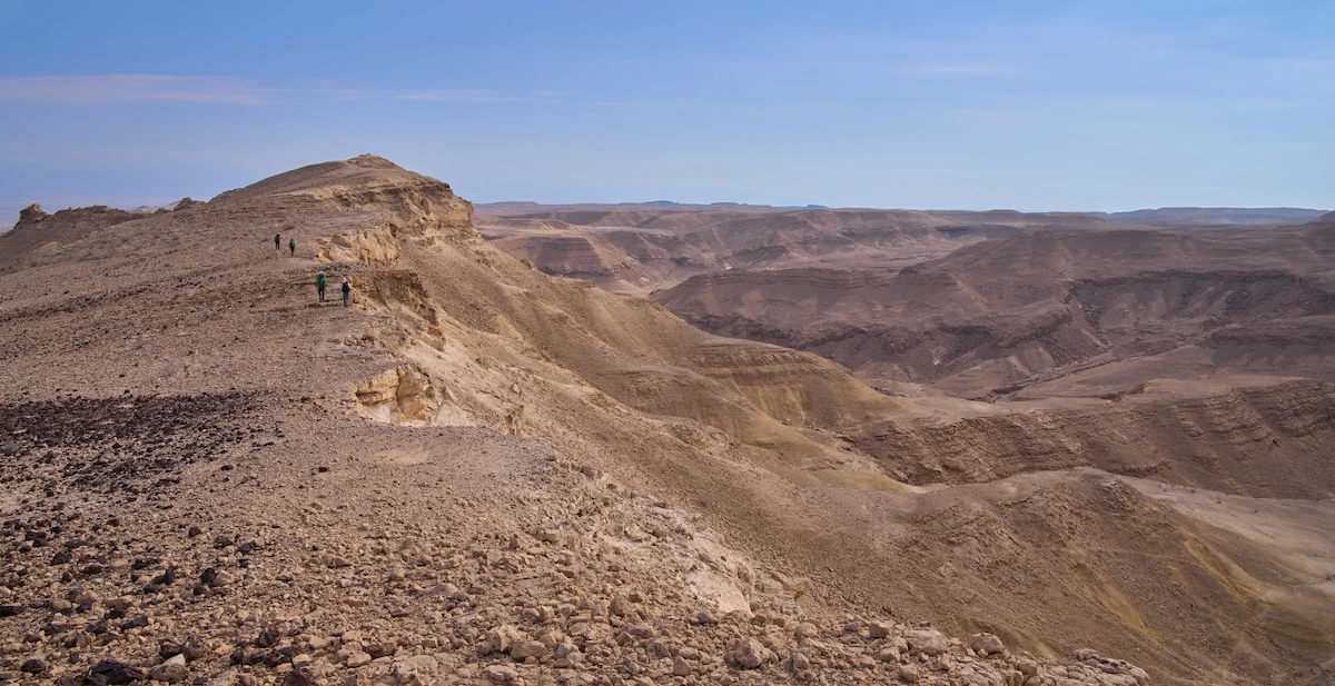 Situated in southern Israel and bordered by Egypt to the west and the Arava to the south, the Negev boasts rocky mountains, craters, and wadis (dry riverbeds); its name originates from Hebrew “Negev” נגב, translated 'dry’ or ‘south.’