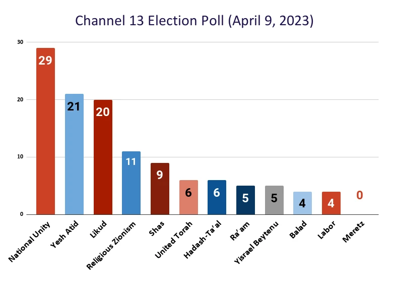 The left-wing Meretz party would still not make it into the Knesset, according to the poll. In previous elections, the party failed to pass the threshold and currently holds no seats in the Knesset for the first time since 1992.