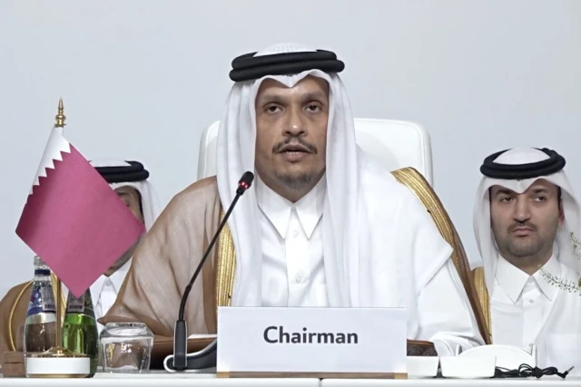 Qatari Prime Minister and Foreign Minister Mohammed Al Thani condemned the strike as “state terrorism” and an attack “against the principle of mediation itself,” as he opened a preparatory meeting for the main summit on Sunday.