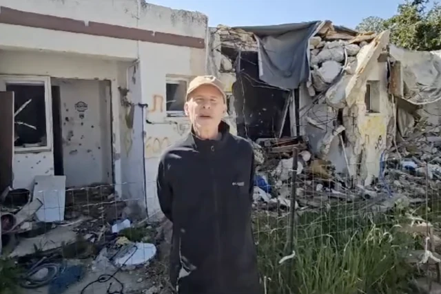 “I am now standing in front of a home in Kfar Aza, the kibbutz where I live,” Siegel said. “You can see the enormous destruction that Hamas did on the October 7 massacre on Kibbutz Kfar Aza. It’s kind of hard to comprehend what I’m seeing today.”