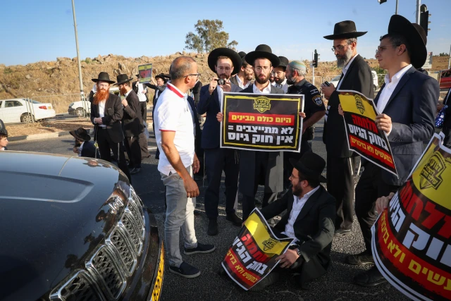 Religious extremists disrupt traffic, protest IDF draft law that 80% of Israelis support