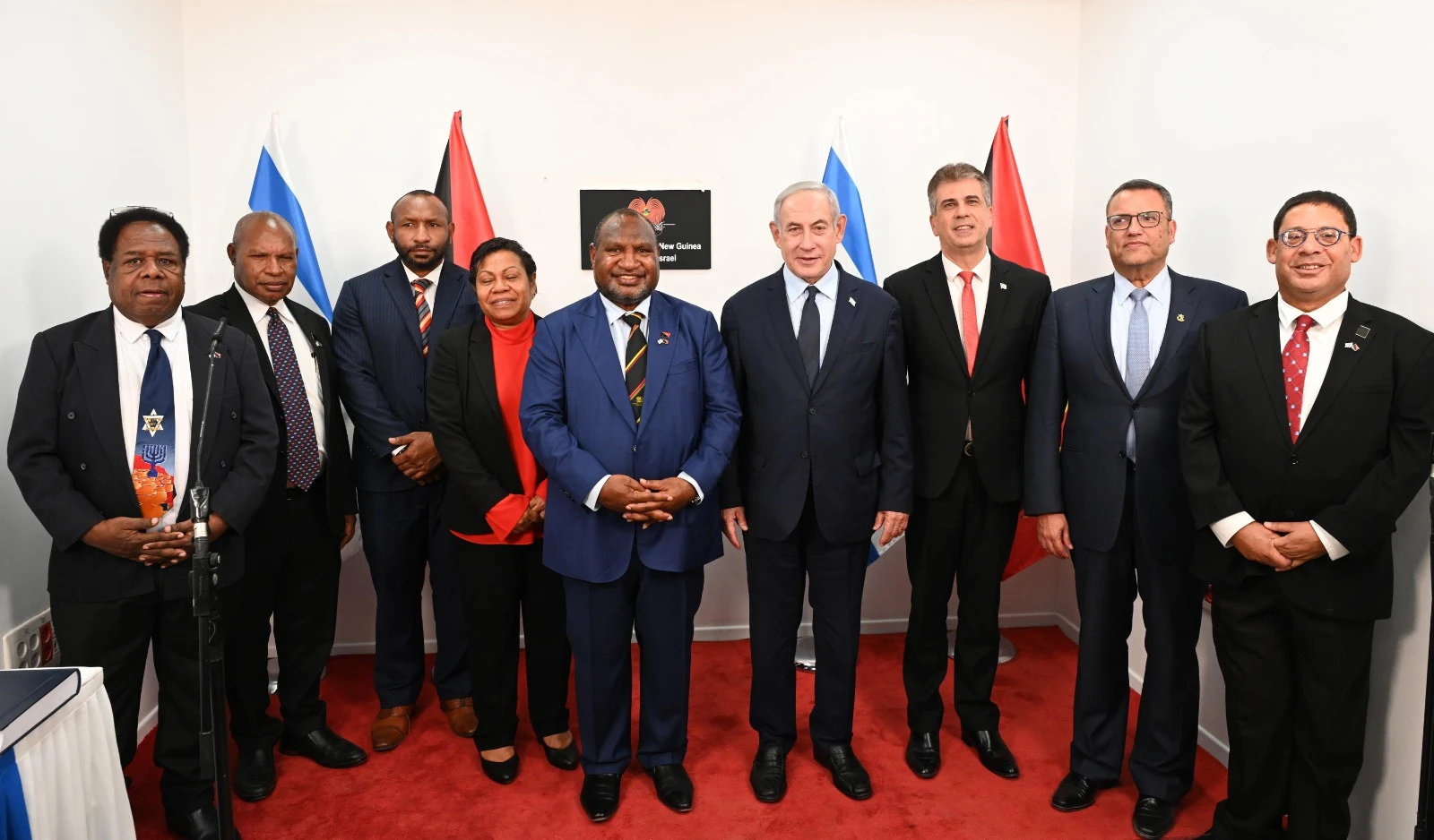 Prime Minister Benjamin Netanyahu, PNG Prime Minister James Marape, Foreign Minister Cohen, Jerusalem Mayor Lion and a delegation of ministers from Papua New Guinea dedicated the Embassy of Papua New Guinea in Jerusalem, the capital of Israelhttps://t.co/IOGhK31xNm pic.twitter.com/9GqBaeCXrm
