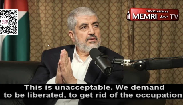 During an interview last week with Kuwaiti podcaster Ammer Taki, Mashaal repeated the Iranian-backed terror group’s ultimate goal of “liberating” the area from the Jordan River to the Mediterranean Sea, meaning eradicating the Jewish state.