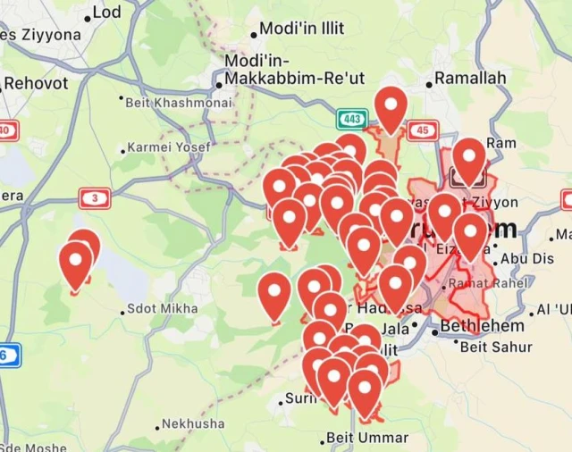 A third confirmed hit landed near the town of Mevaseret Zion, just opposite Jerusalem.