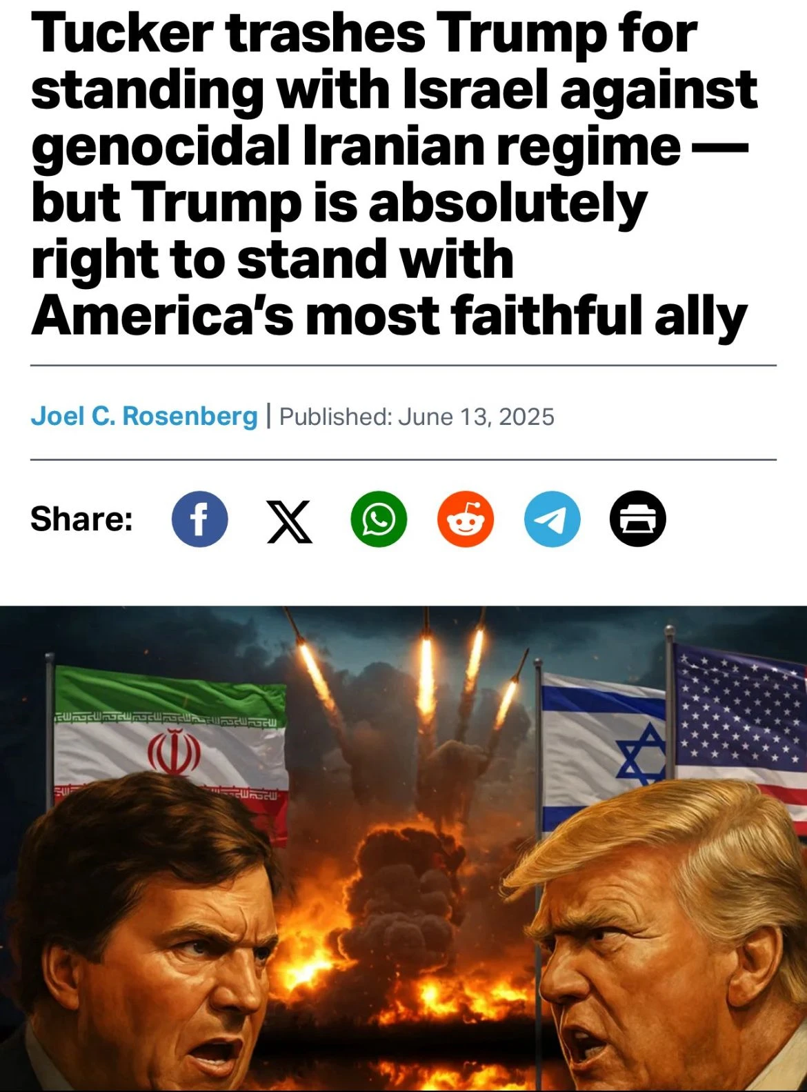 But Johnson left no doubt whatsoever that when it comes to Israel, Iran, and the use of American force, he believes Trump is absolutely right – and Tucker and Steve Bannon are, sadly, dead wrong.