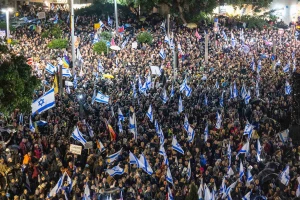 The crowd could be heard chanting: "Bibi go home", "Disgrace" and "Democracy" during the demonstration