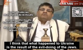 Member of the Houthi Supreme Political Council in Yemen claims that the war in Ukraine is a result of ‘evil-doing’ by the Jews and that Russia was dragged into the war by the West
