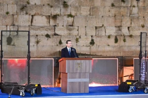 Herzog spoke at the state opening ceremony for Memorial Day at the Western Wall Plaza in Jerusalem.