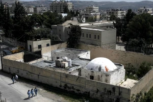 Jewish pilgrims are escorted by military guard since tomb became a flashpoint for regular violence and a target of vandalism