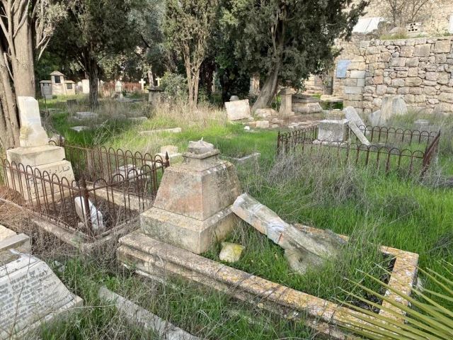 The cemetery was opened in 1848 by Anglican bishop of Jerusalem Samuel Gobat. Gobat’s grave was one of those desecrated.