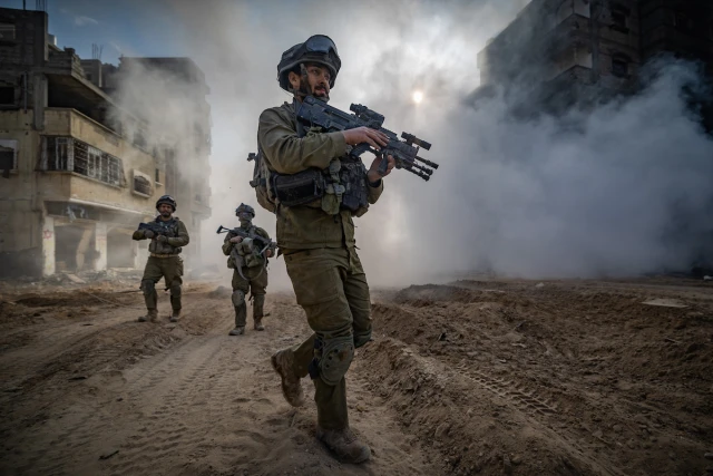 Israeli soldiers from the 8717 Battalion of the Givati Brigade operating in Beit Lahia, in the northern Gaza Strip, December 28, 2023. (Photo: Yonatan Sindel/Flash90)