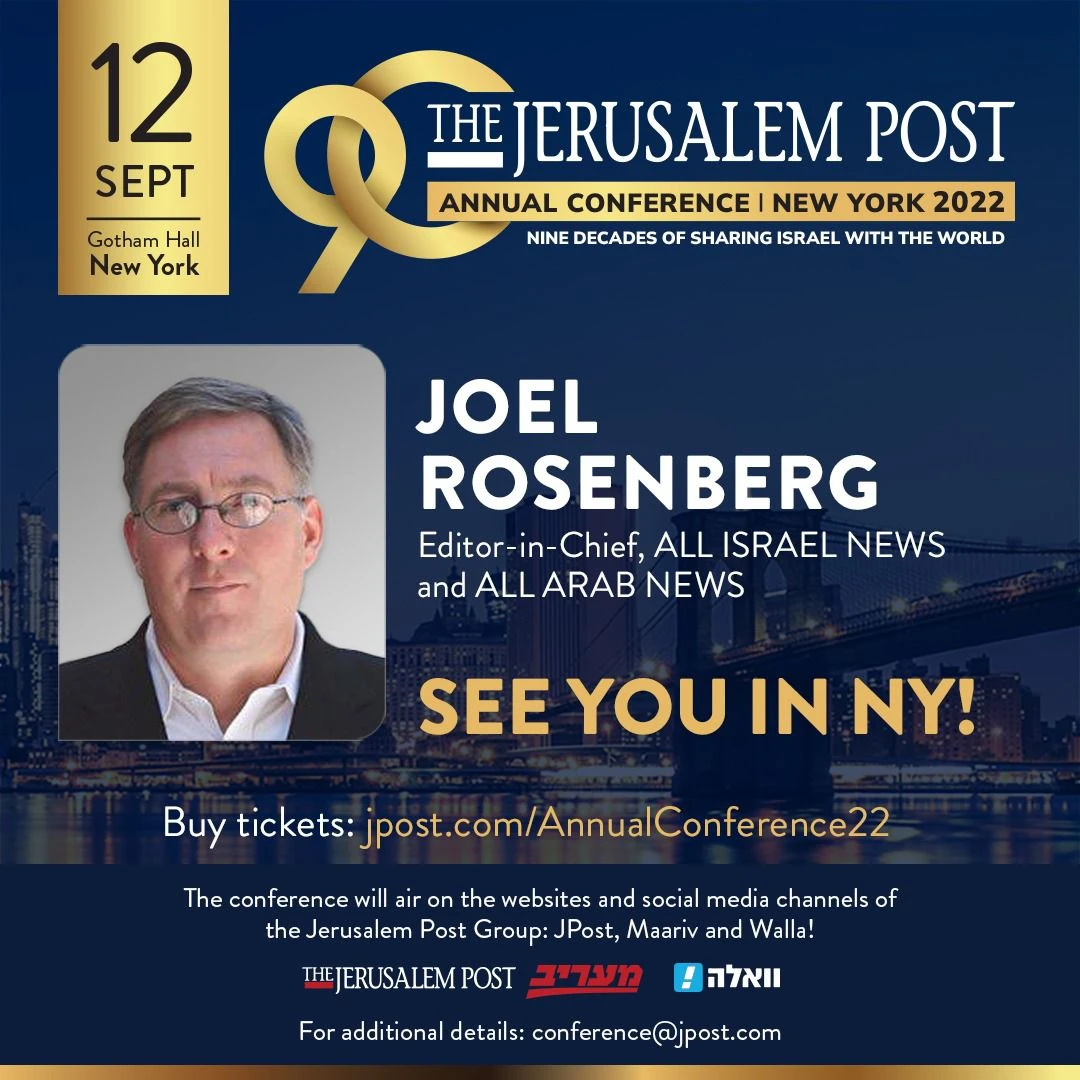 I’m excited about speaking at Jerusalem Post’s 90th anniversary conference, along with Israeli Defense Minister Benny Gantz and Arab ambassadors