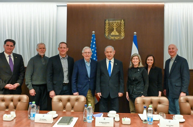 U.S. Senate Minority Leader Mitch McConnell led a group of Republican senators to meet with Israeli Prime Minister Benjamin Netanyahu, President Isaac Herzog and others. Among the senators who participated in the delegation were Pete Ricketts, Markwayne Mullin, Jodi Ernst, Ted Budd, Thom Tillis and Katie Britt.