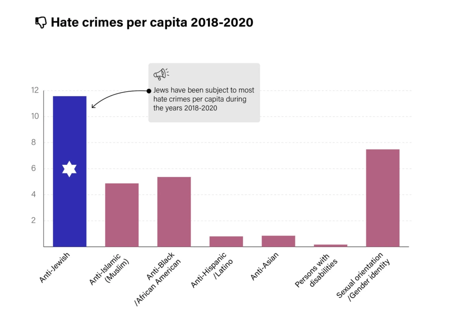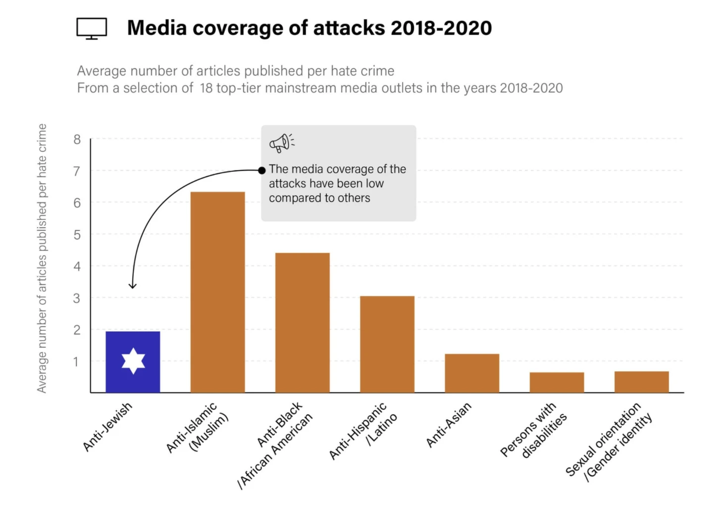 While Jews are one of the smallest minority groups in the U.S., they have been the targets of the most hate crimes per capita between 2018 and 2020. At the same time, the research shows that, on average, anti-Jewish hatred produced minimal media coverage.
